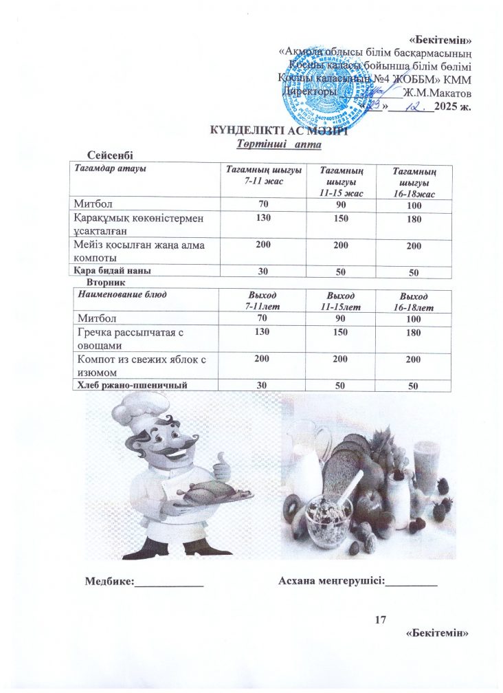 23 желтоқсан (дүйсенбі) ас мәзірі