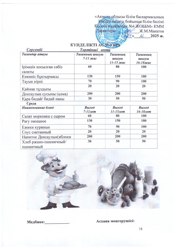 24 желтоқсан (сейсенбі) ас мәзірі