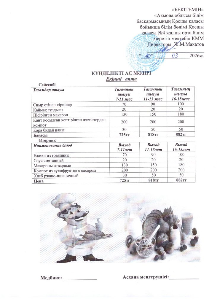 10 наурыз (сейсенбі) ас мәзірі