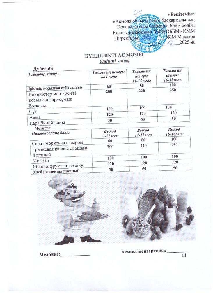 15 желтоқсан (дүйсенбі) ас мәзірі