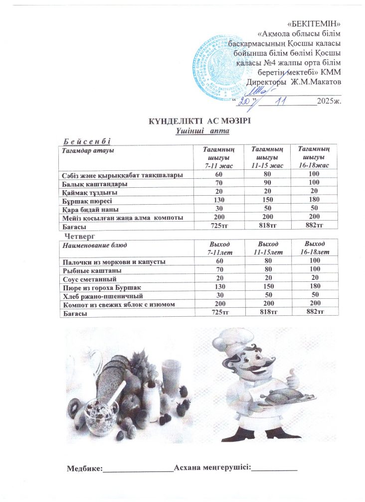 20 қараша (бейсенбі) ас мәзірі