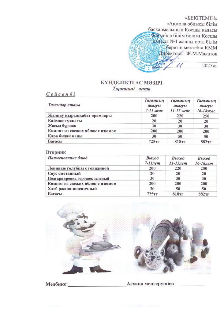 25 қараша (сейсенбі) ас мәзірі
