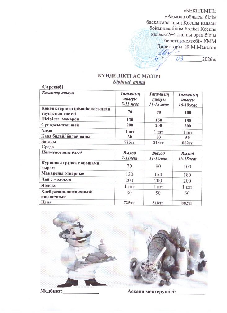 4 наурыз (сәрсенбі) ас мәзірі