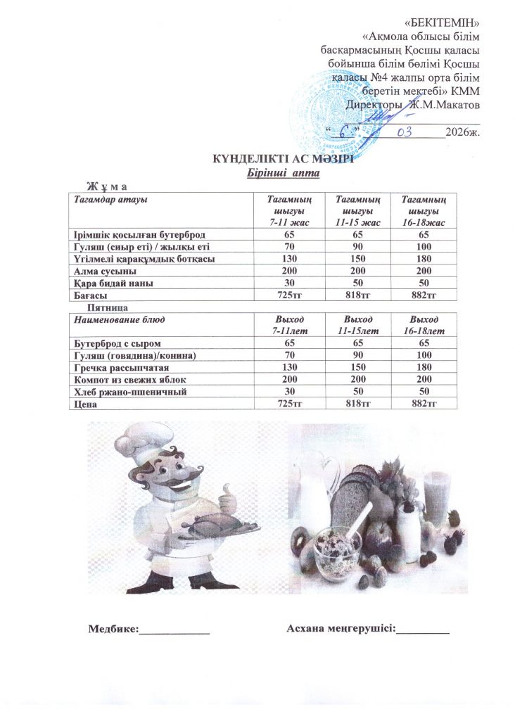 6 наурыз (жұма) ас мәзірі