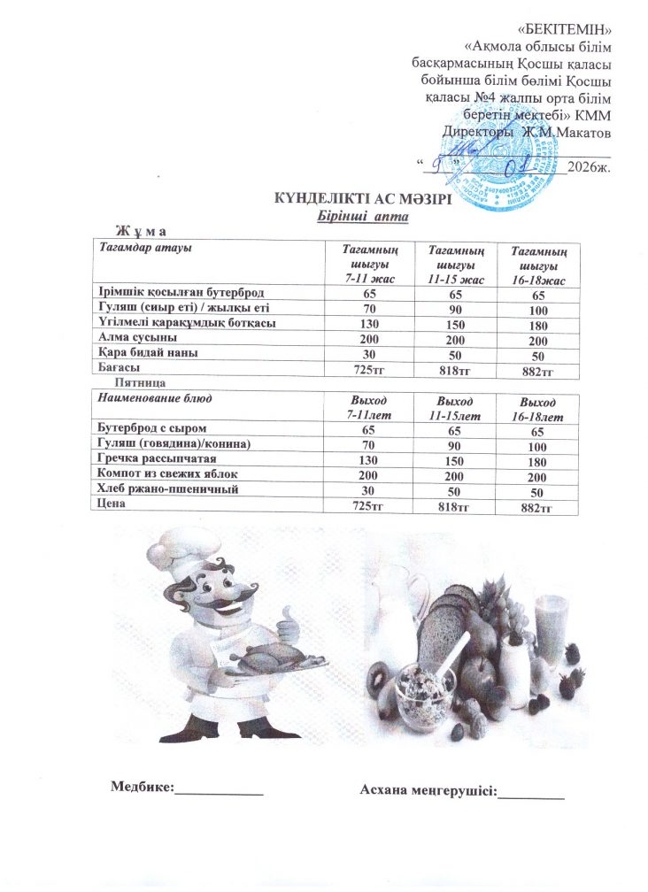 9 қаңтар (жұма) ас мәзірі